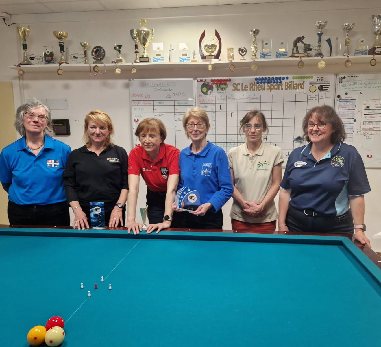 Encore une fois nous avons été très bien accueillies au club du Sporting Le Rheu billard, avec un déjeuner organisé sur place, avec un arbitre à chaque table, et à chaque tour, etc. Merci à Franck, à Marc, à Gérard, Laurent, Annie et les autres.